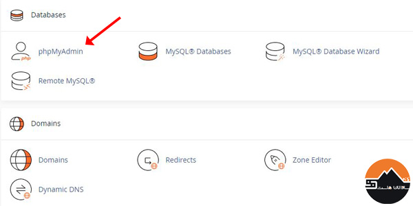 برای بکاپ گیری از دیتابیس ابتدا وارد سی پنل شده و سپس مطابق تصویر از قسمت Databases گزینه phpMyAdmin را انتخاب نمایید.